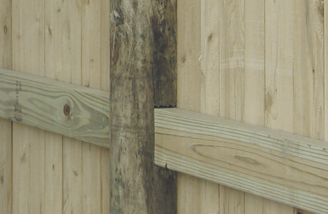 Designer Traditional Fence F-WS-1: Our Designer Traditional fencing is constructed with 2 inch x 4 inch backing rails and 1 inch x 4 inch butt boards. Optional V-matched tongue & groove boards, as shown here, give additional strength and maintain a solid appearance. Every section is finished with a 2 inch x 3 inch Essex profile section cap.